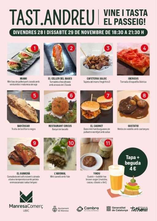 Els dies divendres 28 i dissabte 29 de novembre, de 18.30 a 21.30 h, torna una de les propostes gastronòmiques més esperades: el TastAndreu 2025, organitzat per la UBIC Manresa.